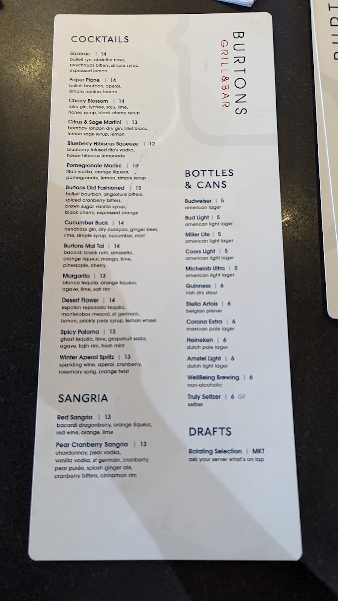 “ Burton’s in Alexandria is exceptional. My server Adam was friendly, courteous and attentive during a busy lunch period. I couldn’t have asked for anything more. The Thai Steak Salad was probably the best I’ve ever had. Micro greens were crisp, the dressing had a sweet tang, and the char on the mouth watering steak blew my mind. 5 out of 5 without a doubt!!! ”